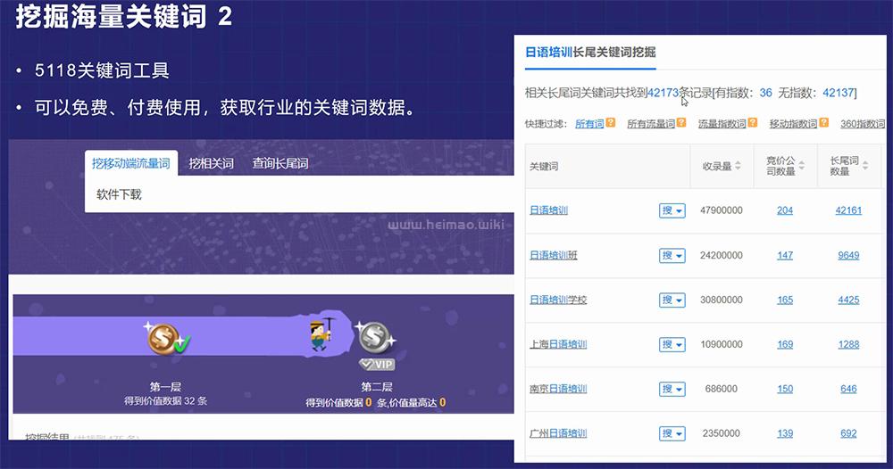 5188關(guān)鍵詞移動(dòng)端挖掘工具,例如以“軟件下載”為例進(jìn)行搜索,可以通過一級(jí)、二級(jí)、三級(jí)、四級(jí)的方式去挖掘,最高可以挖到五級(jí),不同級(jí)別的帳號(hào)挖掘關(guān)鍵詞的級(jí)數(shù)也是不同的,搜索“日語培訓(xùn)”可搜到4000多條記錄,每條記錄我們可以再進(jìn)行挖掘,例如“日語培訓(xùn)班”可以挖掘9600多條、日語培訓(xùn)學(xué)校有4000多條”,每個(gè)關(guān)鍵詞挖掘的記錄我們還可以進(jìn)行導(dǎo)出來分析篩選,篩選出與我們網(wǎng)站行業(yè)相關(guān)的關(guān)鍵詞供我們使用,至于要如何用,就要看我們對(duì)于自己所在行業(yè)的理解了。