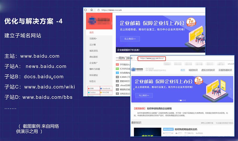 子網(wǎng)站或子目錄與主網(wǎng)站定位必須要一致,例如主網(wǎng)站講的是服裝,而子網(wǎng)站或上圖目錄更新內(nèi)容卻是娛樂信息,這種肯定是不行的,例如上圖中主網(wǎng)站講的是云計(jì)算、哉名資訊、企業(yè)推廣,而二級(jí)子目錄提供的是企業(yè)郵箱,與主網(wǎng)站定位高度相關(guān),這樣二級(jí)子目錄的流量就很容易轉(zhuǎn)化,如果你的子網(wǎng)站或子目錄與主網(wǎng)站沒有關(guān)聯(lián)系,那么你的子網(wǎng)站或子目錄的流量就不會(huì)有價(jià)值。