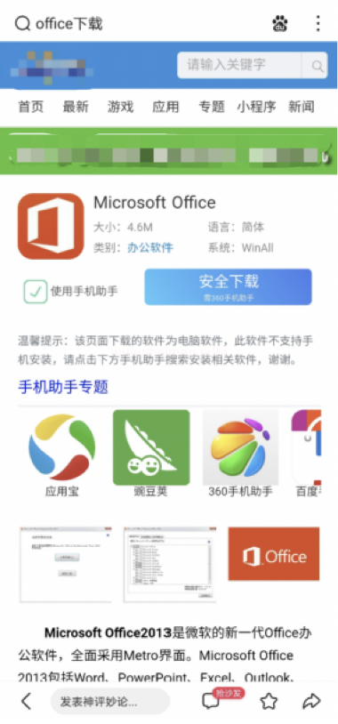1、下載頁面內容描述為下載某APP1軟件,但下載下來的卻是APP2,甚至是博彩或色情APP