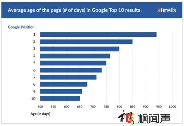 可以看到,排在前10的頁面平均是2年以上的頁面,越靠前越老,排在第一頁的平均存在了將近3年。