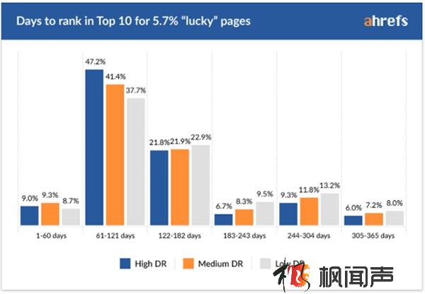 然后再看看這5.7%獲得了排名的頁面,從沒有排名到進入前10花了多長時間。結果如下: